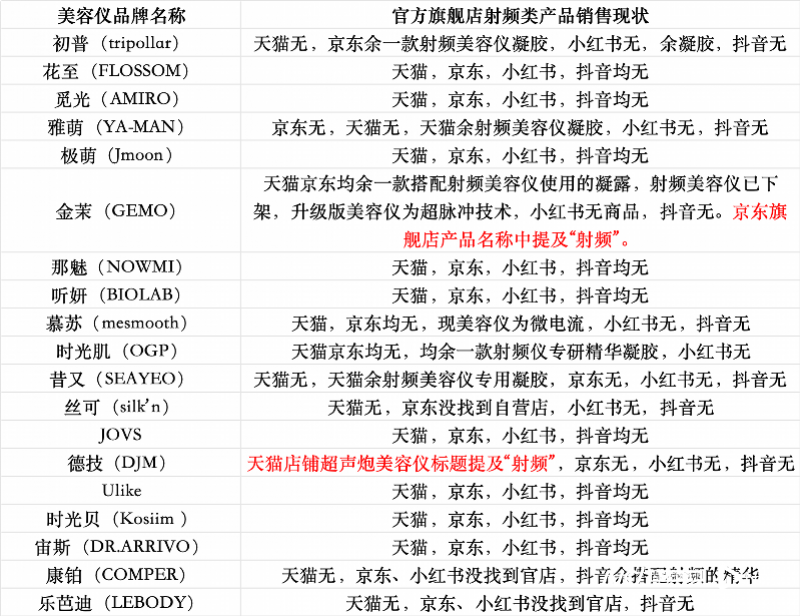 新规首日美容仪品牌执行情况(不完全统计)