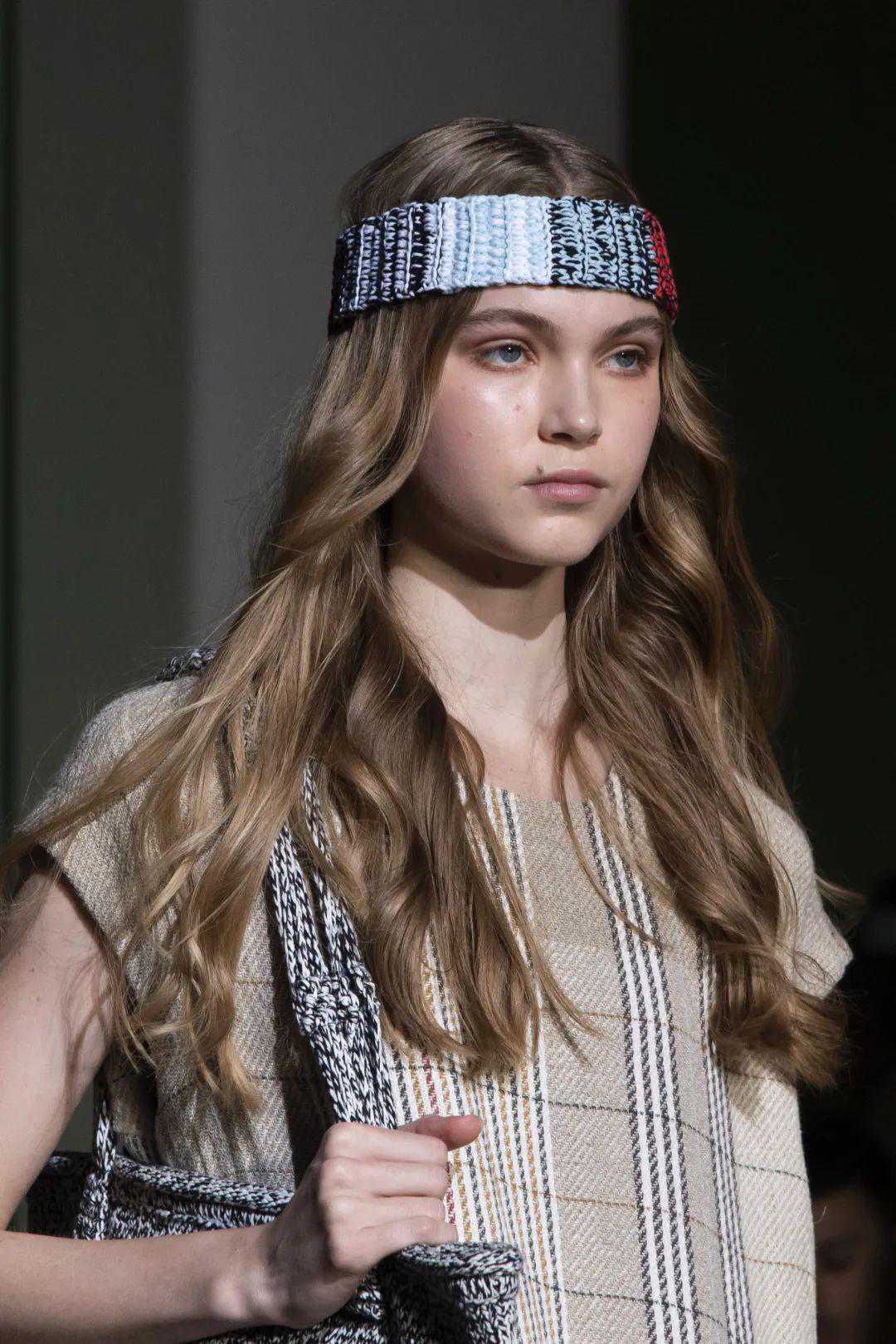 除此之外,今年还流行起发箍反戴的“高能戴法”,FENDI2020秋冬大秀上就让我们见识到了厉害之处,厚发箍纷纷出现在了模特们的后脑勺上,显得更有个性。