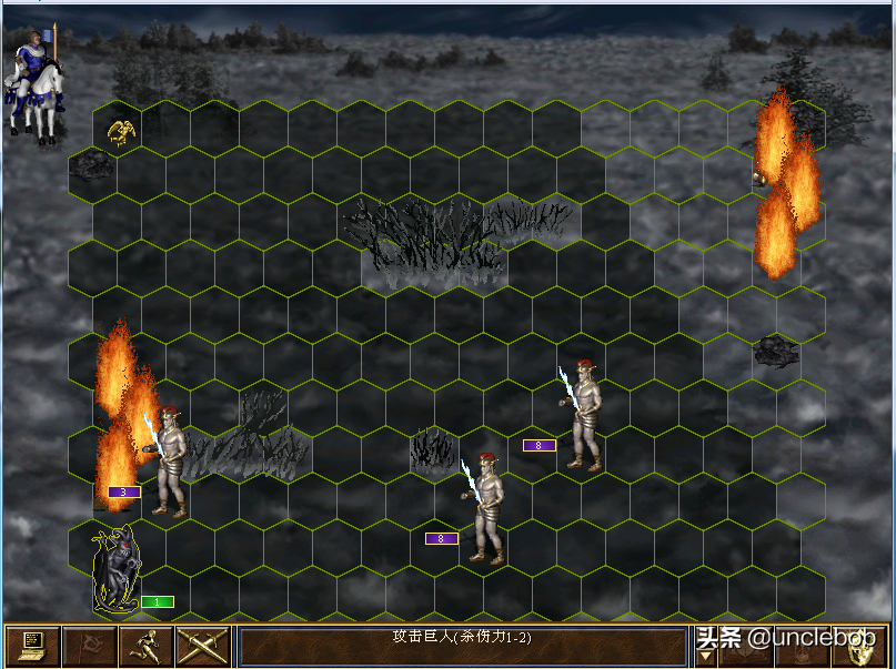 明知道是陷阱也不得不踩进来,我不是控制剧情的地图作者,我只是一个充满同情的旁观者。艾丽西斯唯一的高光时刻——火烧泰坦。石像鬼分队211122,泰坦会秒杀两队石像鬼,轮到我方行动的时候释放加速魔法,全体等待,让巨人们向前冲。