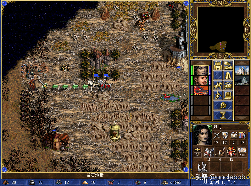 m2w1d3风月跑到高山壁垒左侧,格里高利往上攻打黑骑的建筑,招募黑骑之后去找风月会合,今天的异界难得没有强敌来袭。