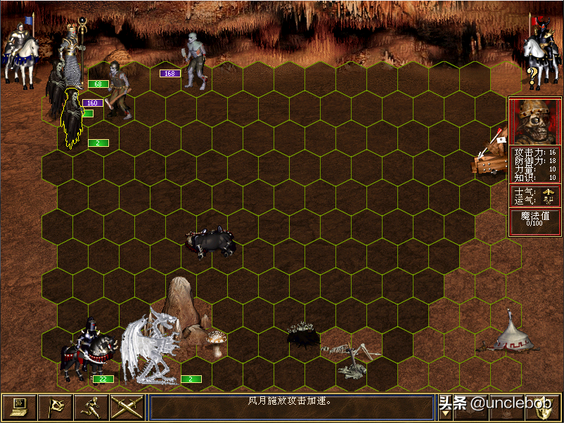 等敌人行动后,咱们的恐怖骑士贴身,不要攻击,目前被反击会有伤亡的,尸巫王射击。
