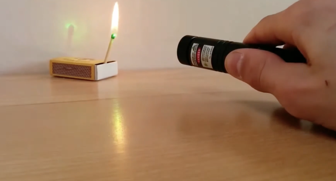 对,你可能想到了亮度。没错,激光笔的发射功率越大就越亮,也越热,现在市面上能买到的有些激光笔甚至能点燃火柴。