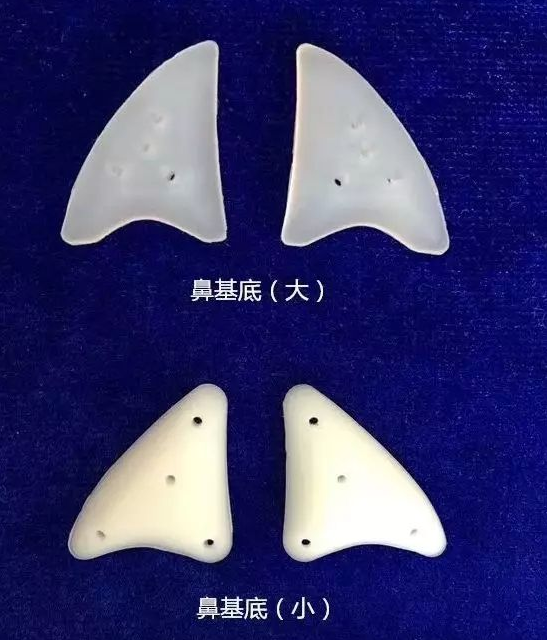 很多人中面部不够立体,大多有鼻基底凹陷的问题,所以现在鼻基底填充越来越流行。鼻基底填充材料既有人工假体,也有自体肋软骨,具体可以根据自己的需要进行选择,以下就是人工假体:
