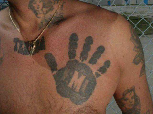 LaEme或M,美国监狱中最大和最残忍的黑帮之一,墨西哥黑手党的象征。最初是由被关押在美国监狱中的墨西哥人组织起来的。
