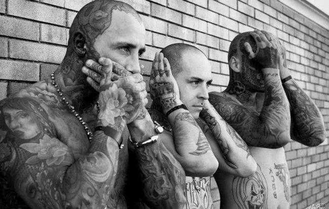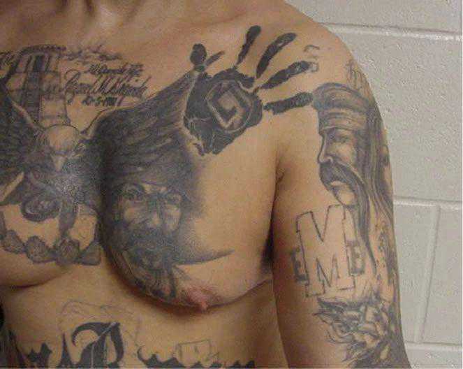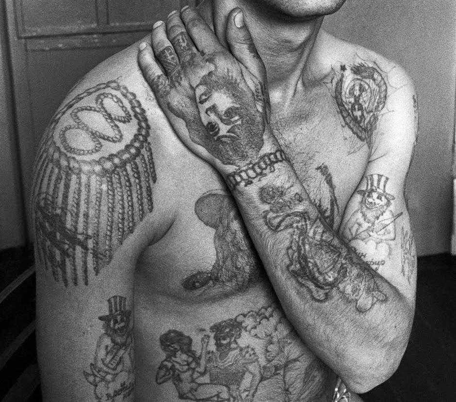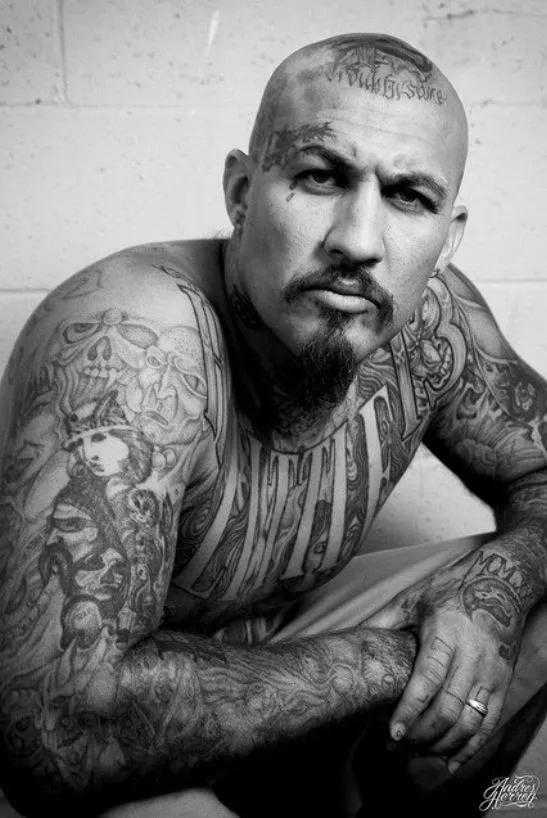 另一方面,在监狱里,纹身是一本护照,不仅反映性格、人生观、世界观。还代表一个人的地位,所属阵营和帮派。纹身越多,代表罪行越重,在监狱呆的时间越长,才有空搞这么多纹身,因此犯人在监狱的地位越高。你是不是狠角色,好不好惹,看一眼身上就知道了。