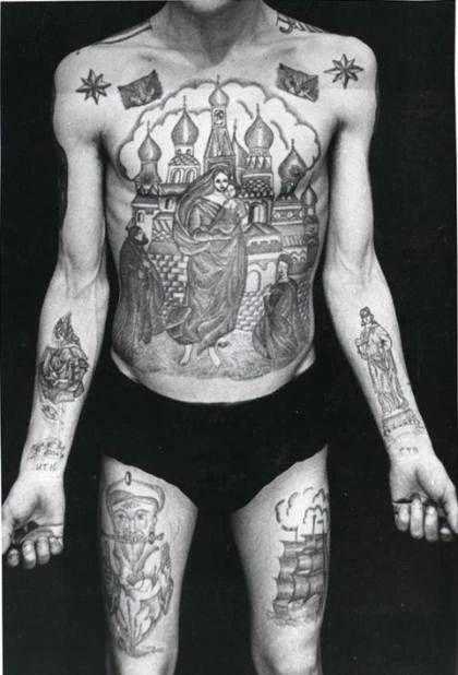 圣母,大多纹在前胸或后背,在犯人们中被视作“护身符”,表示希望在犯罪中受到保护。