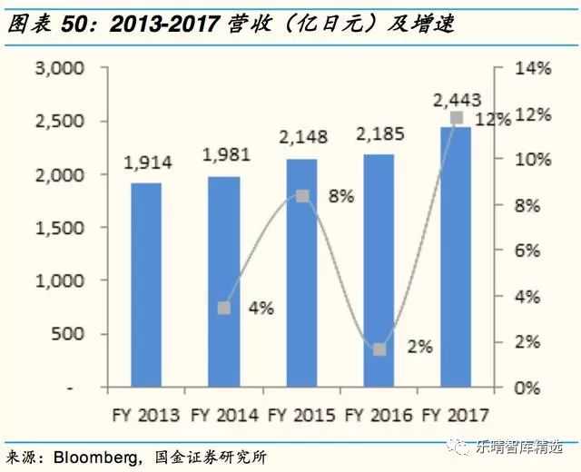 目前集团营收主要来自日本国内,占比在90%左右,毫无疑问全球化是公司的下一个重要增长点,公司目标2020年将海外业务占比提升至20%左右。