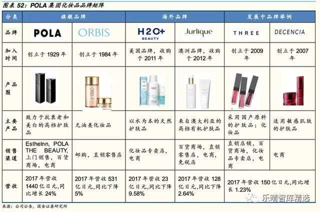 POLA是创立于1929年以“上门销售”为特色的高端化妆品品牌,畅销产品包括美白丸和去皱面霜;ORBIS是创立于1984年以“邮购销售”为特色的主打无油类化妆品品牌,70%左右的商品通过线上销售,连续多年获得日本化妆品通贩销售。