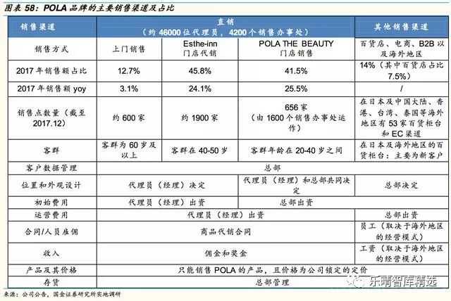(1)直接上门销售:自POLA品牌1929年设立以来,坚持“自主生产、销售自己的品牌”理念,迅速扩大了上门销售的销售额。2017年销售占比为13%。