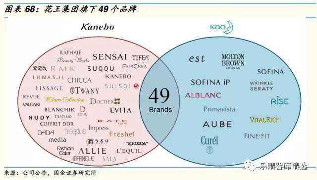 花王收购佳丽宝拓展化妆品版图:花王2006年以4400亿日元收购日本化妆品巨头佳丽宝:佳丽宝作为当时日本第二大化妆品集团,涉足化妆品领域60多年,旗下护肤品和彩妆品牌在亚洲和欧洲销售渠道布局丰富。