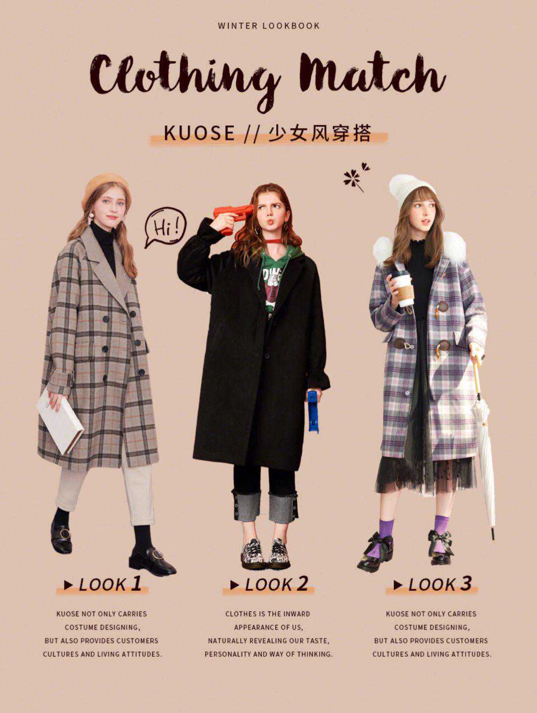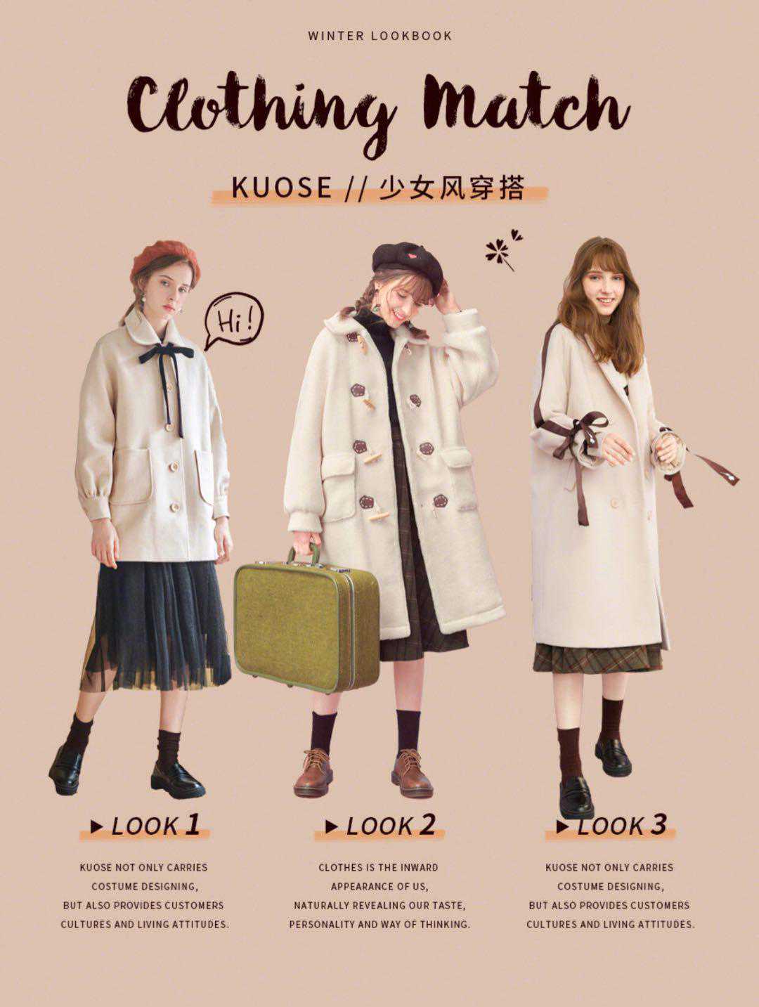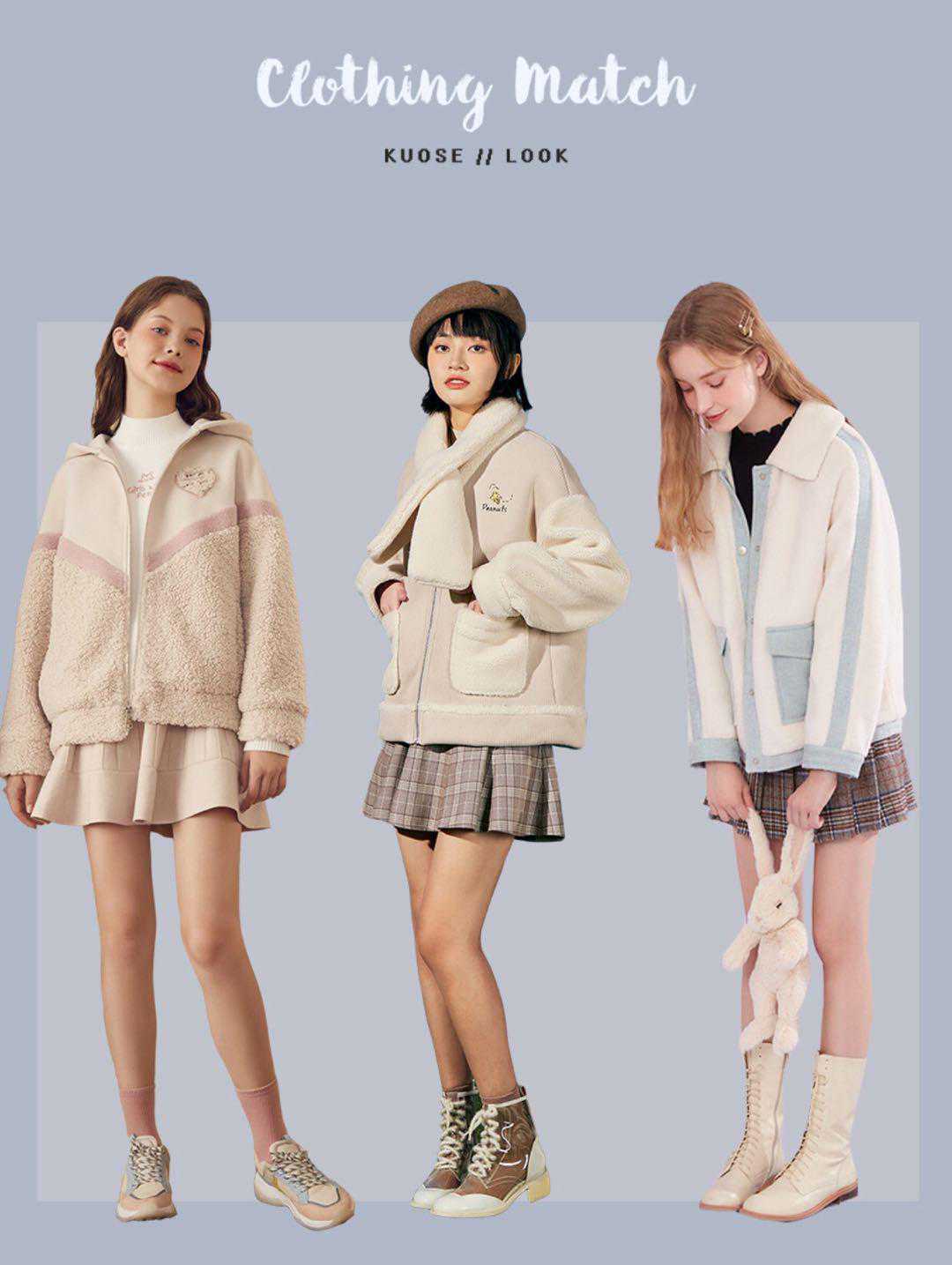 色短外套,毛绒绒的羊羔毛材质,传递着冬日的温暖,搭配高腰小伞裙俏皮可爱,不要忘记搭配光腿神器或近色裤袜