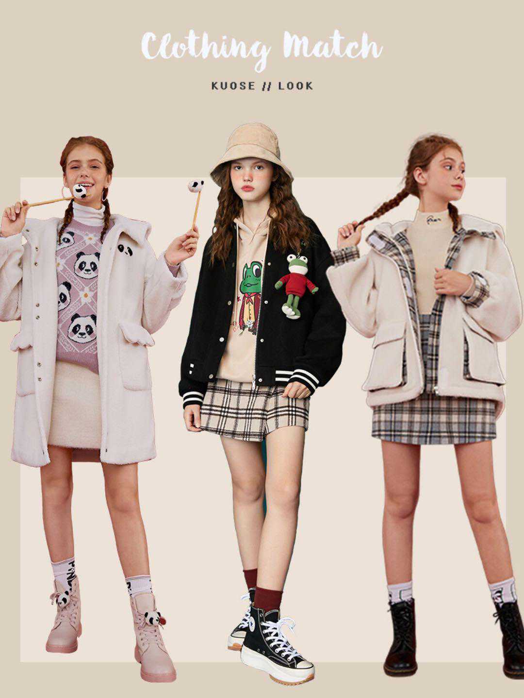 卫衣,可爱的印花卫衣超甜的,搭配格纹短裙和高帮布鞋,妥妥的学院少女,