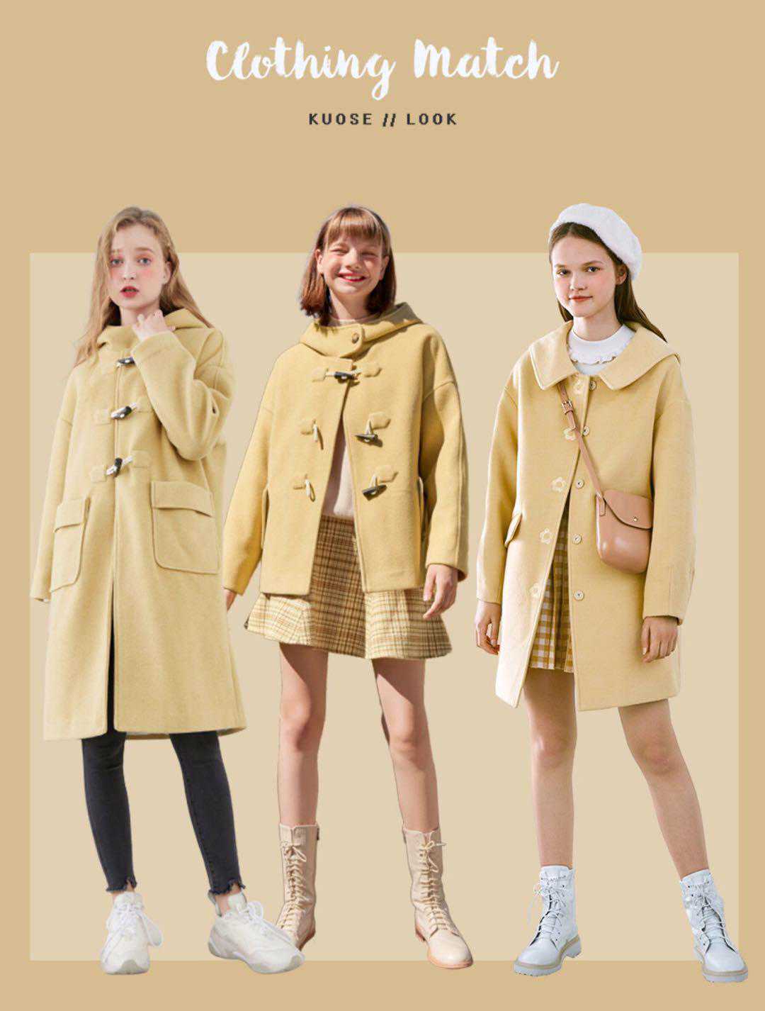 牛角扣外套,牛角扣大衣一定是秋冬,不可缺少的单品,中长款设计无论是搭配裙裝,还是裤裝都OK,选择简单一点米色,可以考虑叠穿,搭配衬衫和马甲或颜色跳跃的毛衣款式