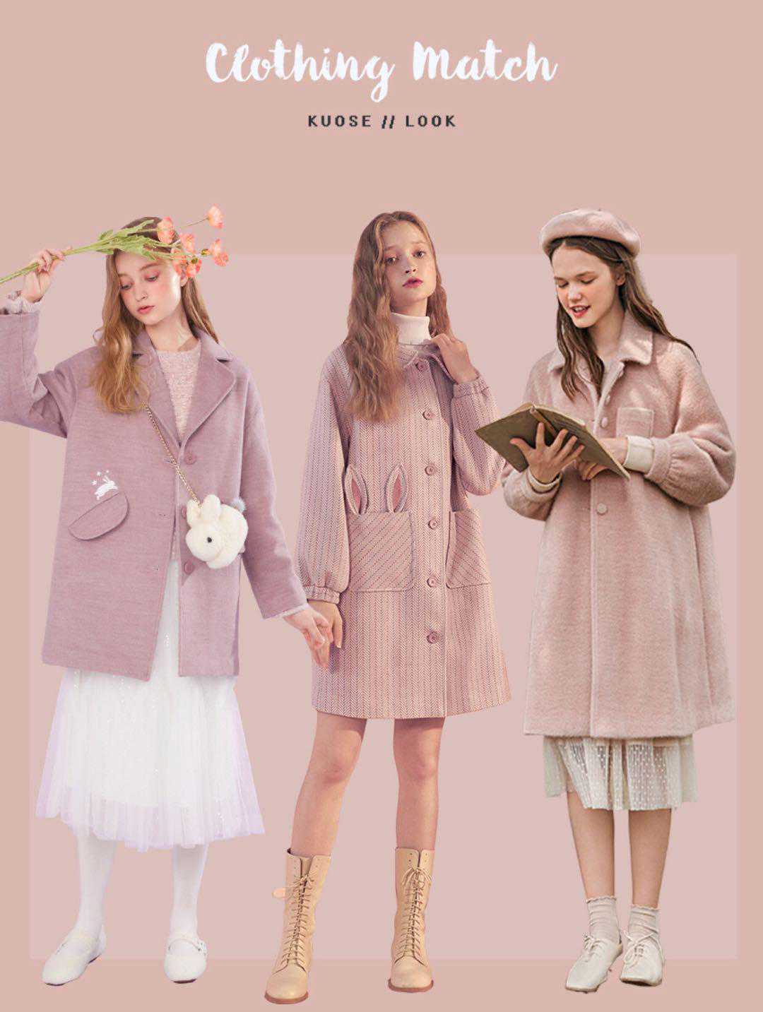 粉色中长款大衣,温柔的粉色浅淡又清新,微微的A字版型,带着少女的俏皮感,很适合搭配一条纱裙,再配上同色系的贝雷帽,秒变甜美小仙女