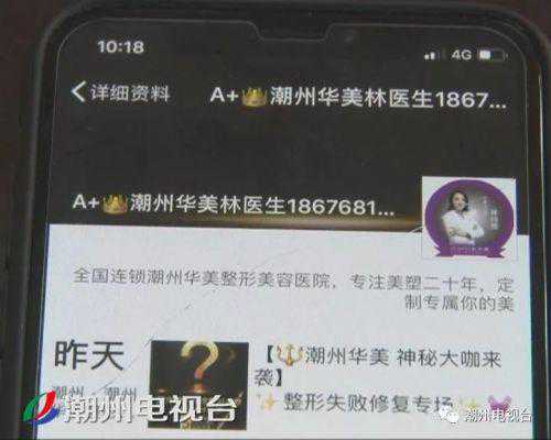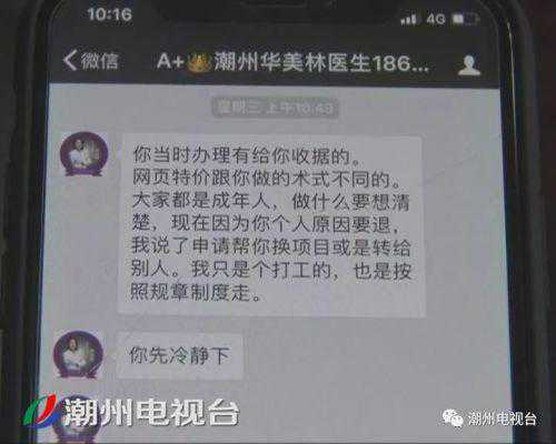 5月12日,林小姐前往潮州市区一家名为华美整形美容机构咨询关于双眼皮的整形手术并在工作人员的推荐下确定并购买了几个整形项目。【相关新闻:南京华美美容医院套路男子隆鼻失败还欠下6万贷款】