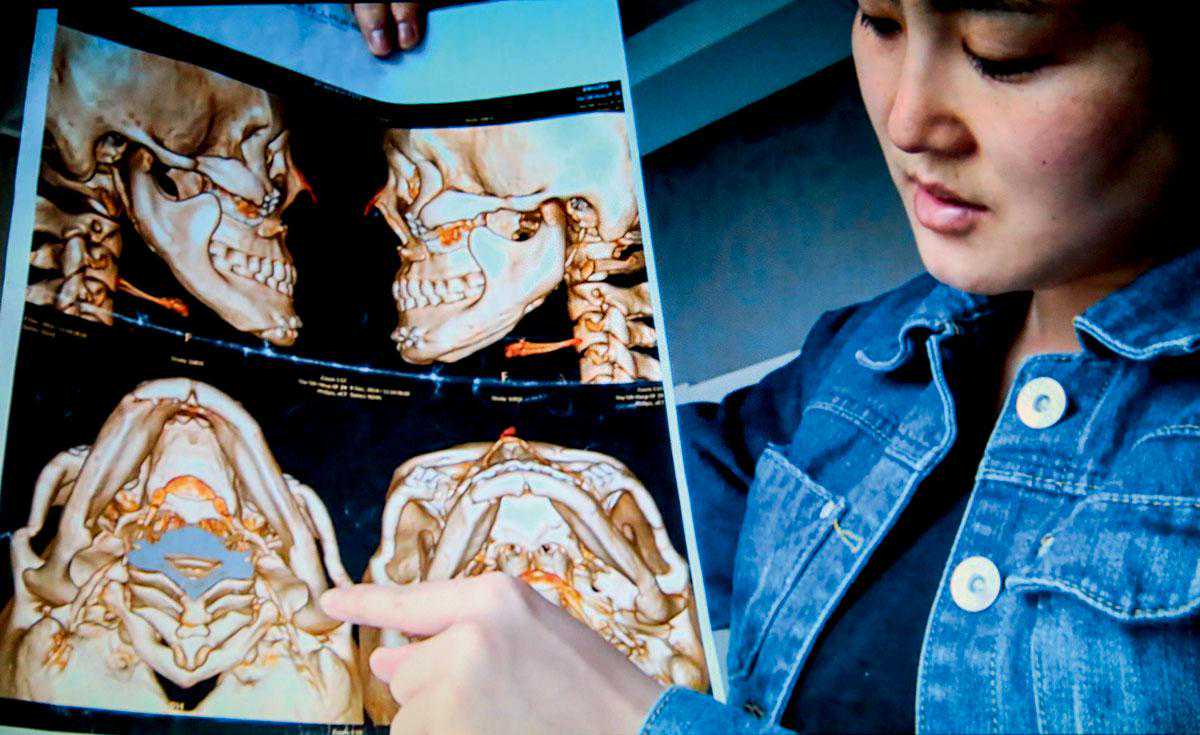 赴韩整形失败者展示她手术后的CT片。(新华社图)