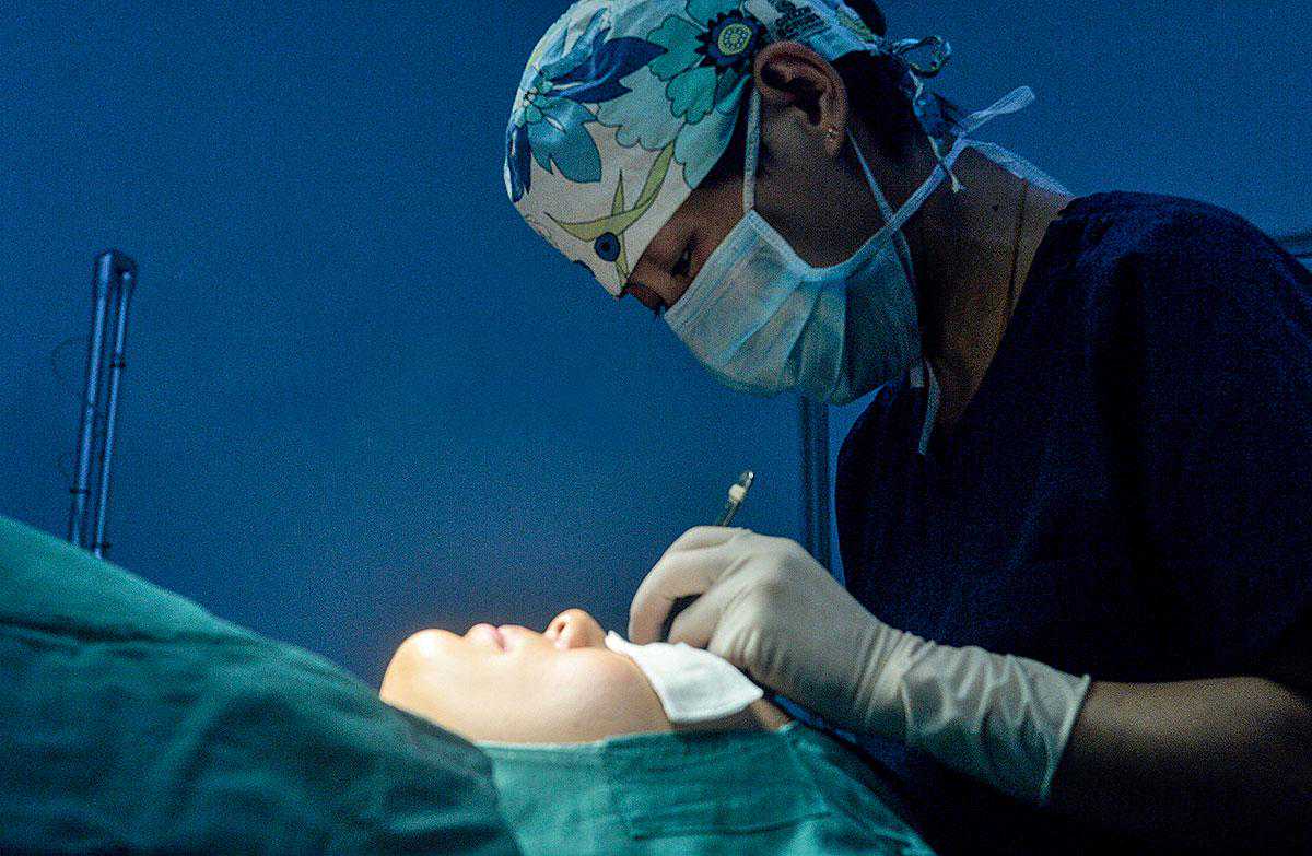 躺在手术床上的金大威是一名抖音网红,拥有一百多万粉丝。他正在接受一场内切祛眼袋手术,也是一次整形修复手术。