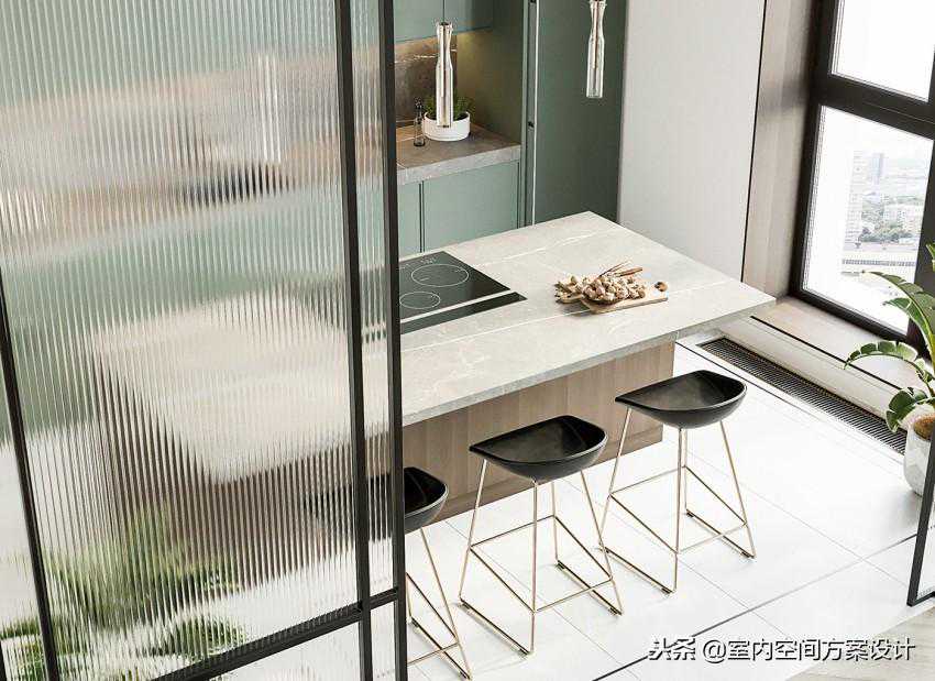 正文 小坪数想要开放式厨房,但又担心下厨时油烟弥漫吗? admin V管理员 /2025-04-15/184 阅读 0415 即采用长虹玻璃黑框滑门有效划分客餐厨,同时延展厨房视觉坪数,阻绝油烟味。餐厨空间顺沿落地边窗配置,使光线随着滑门敞开洒进,线板立面与与鱼骨纹木质地板,形塑一股沉静典雅韵味,厨房包覆落地灰豆绿橱柜,贯穿大理石云理质地于其间,点缀古铜五金、灯具、线性吧台椅增添高雅焦点,并藉由长纹雾透玻璃拉门为紧缩配置注入轻盈感,此外,墙面的浅灰绿、苹果绿,不仅搭衬浴室奔放雅白大理石砖、黑白艺术地砖、拼贴水磨石之外,也消解黑铁隔间的冷冽质感。 -- 展开阅读全文 --
