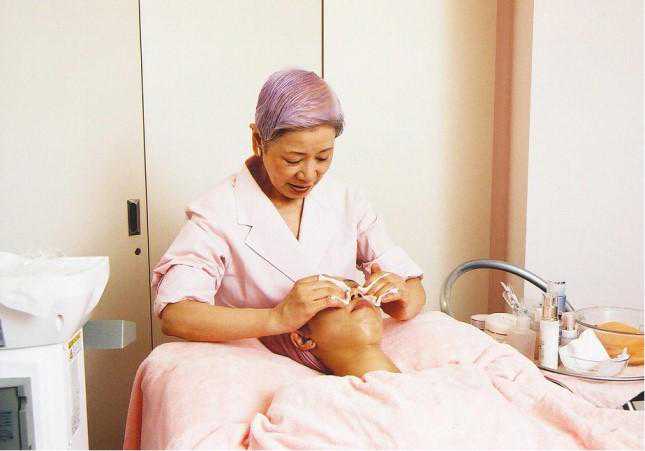 2002年退休前夕佐伯千津为顾客做美容