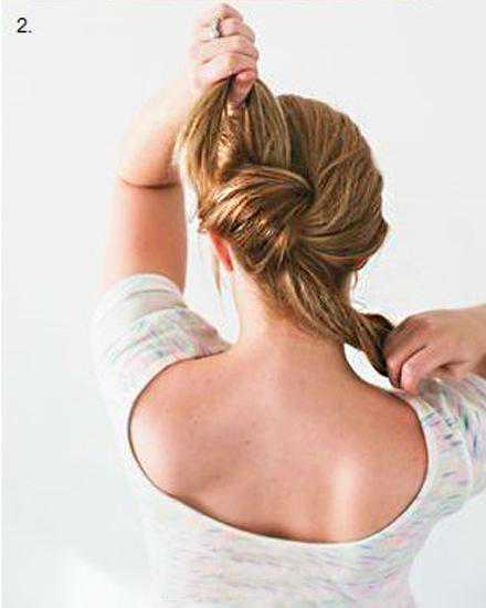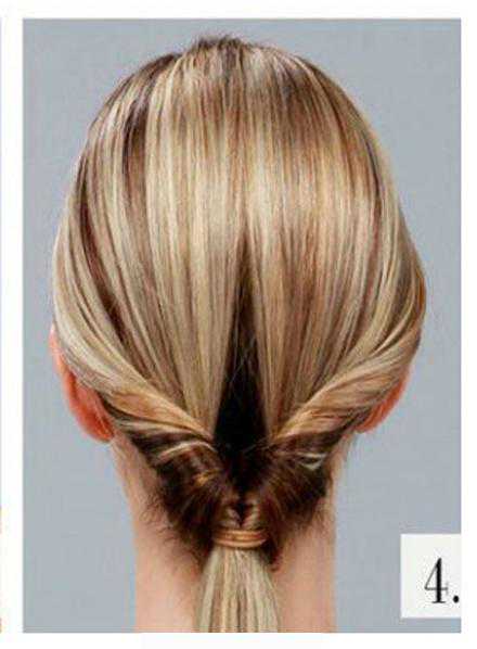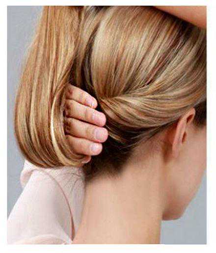Step5:头发倒翻,剩余头发藏在翻转处的头发中,夹子固定。