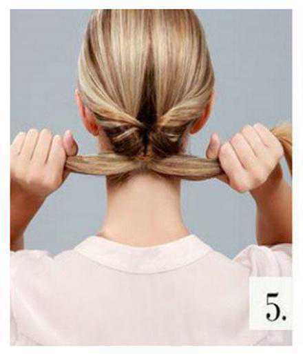 Step2:与平时生活中打结一样将头发同理打结拉紧。