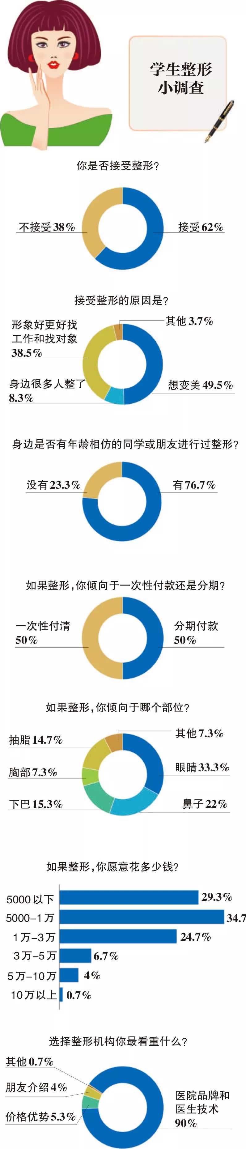 清研智库问卷调查显示,学生整形选择分期付款方式的占到一半。