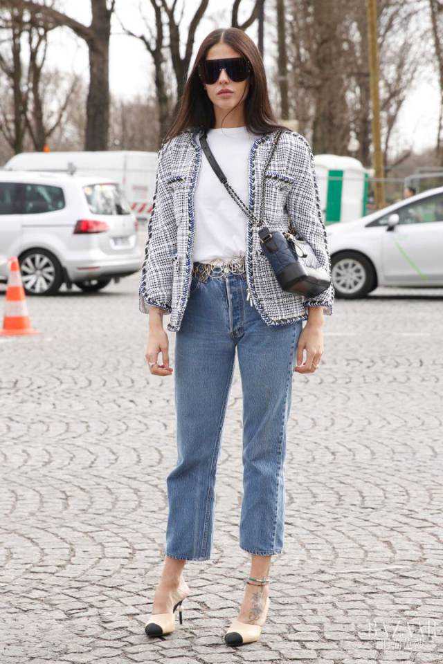 一件小香风的外套搭配Momjeans能穿出十分雅致的质感,不用特别费心思就突显出优雅知性的形象。时髦精腰间精致的的镂空腰带和珍珠鞋跟更是点睛,真是细节见衣品呐~