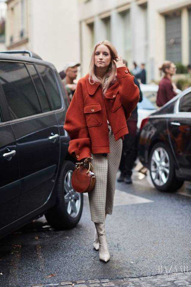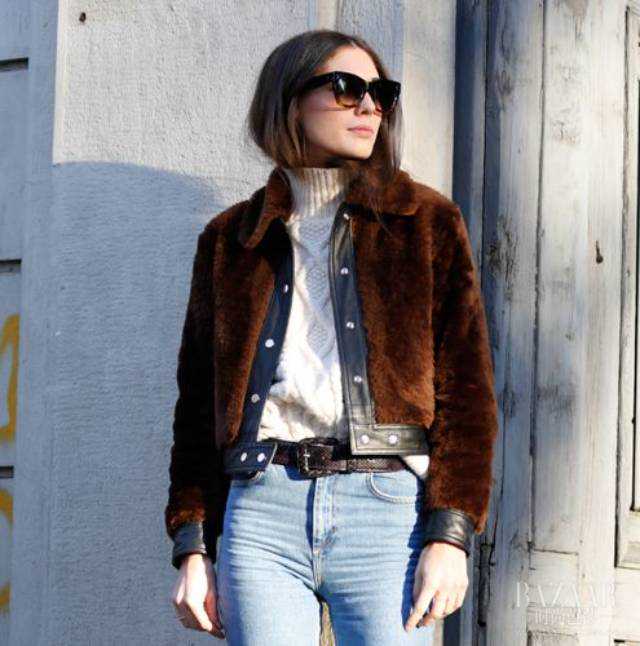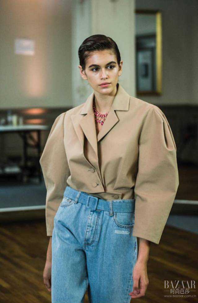 像Kaia这种稍夸张的廓形外套搭配妈妈裤也是拗造型的一把好手~这种复古别致的小外套即使随便一搭也能轻松出彩!