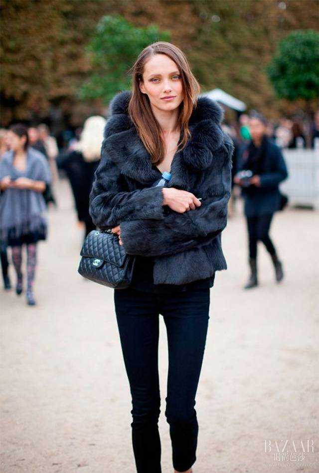 如果上身选择了蓬松柔软的皮毛外套,就得让下半身减负。修身的铅笔裤刚好适合!一身look呈现优雅清冷的名媛气质,非常适合想步入轻熟风格的仙女们,谁穿谁好看!