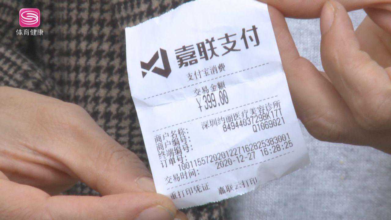 12月27日,薛女士在南山约丽美容院花费399元购买了眼角除皱的肉毒素注射服务,第二天感觉头晕不适,再次来到美容院希望对方提供医生资质和药物的相关证明,但被约丽美容院负责人拒绝,因此薛女士怀疑美容院医生不具有合法资质,并且对药品的真伪也心存疑虑,接到薛女士的报料后,体育健康特搜组记者跟随卫监部门一同来到美容院进行了调查。