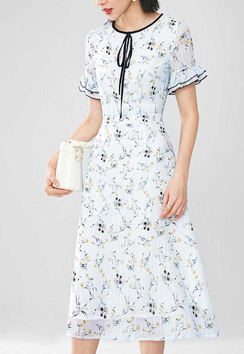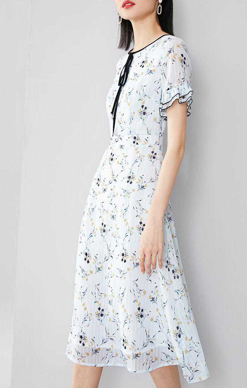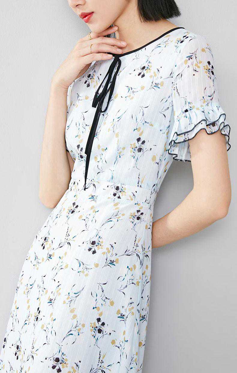 而今天为大家带来的这条印花连衣裙就是如此,白色的纯洁魅力,搭配上精美柔和的印花,轻松就能做到给人眼前一亮的效果,在日常穿搭中也是十分有气质魅力的存在。