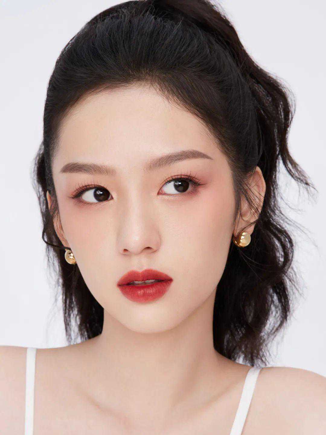 额头宽可以把眉毛稍稍化长一些,和面部宽度相匹配,这样就不会因为面部留白太多衬得脸宽。