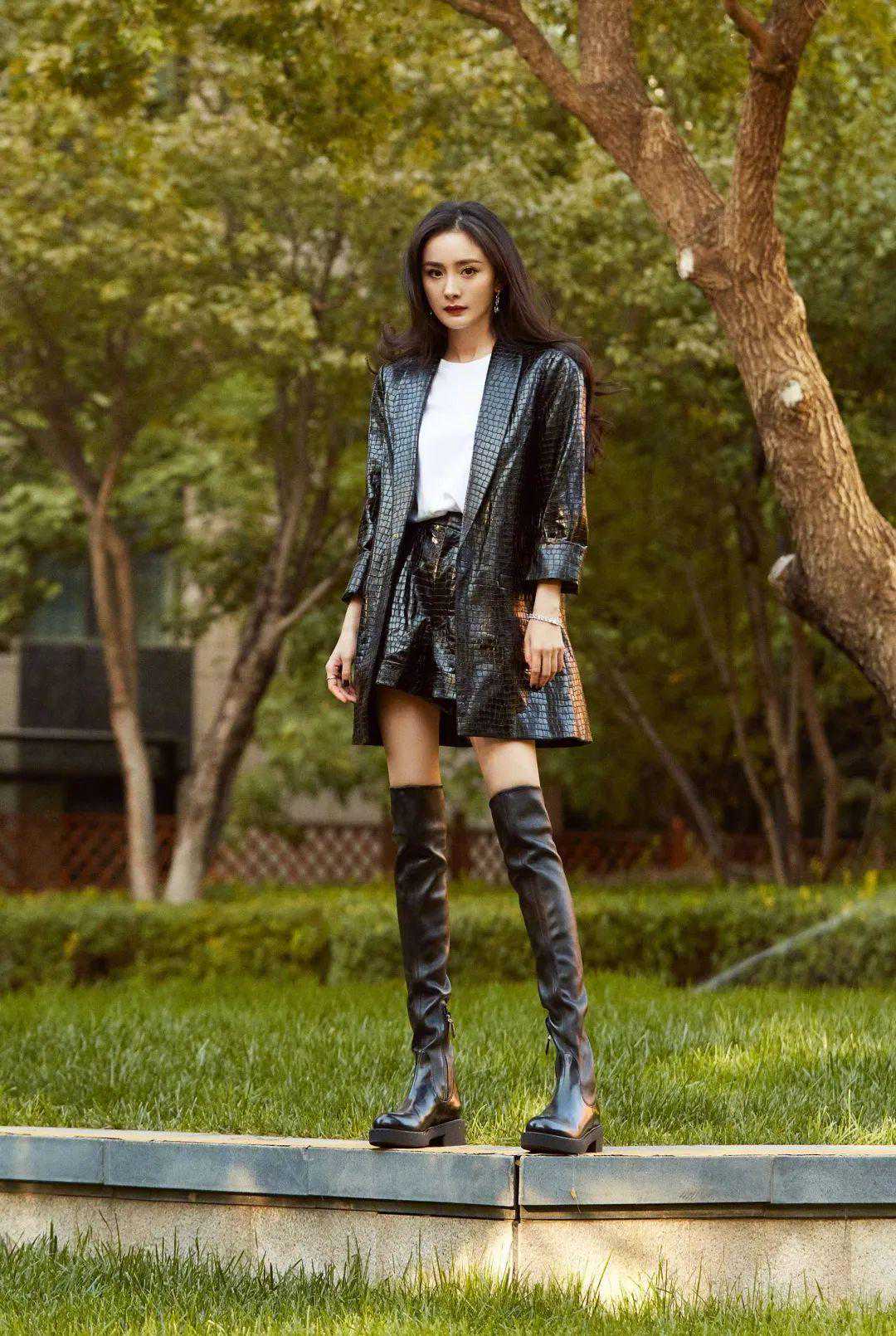 现在皮衣的款式多了,搭配的出的风格也丰富得多。就拿杨幂举例,同样是皮衣,她就搭得可甜、可酷、可性感。
