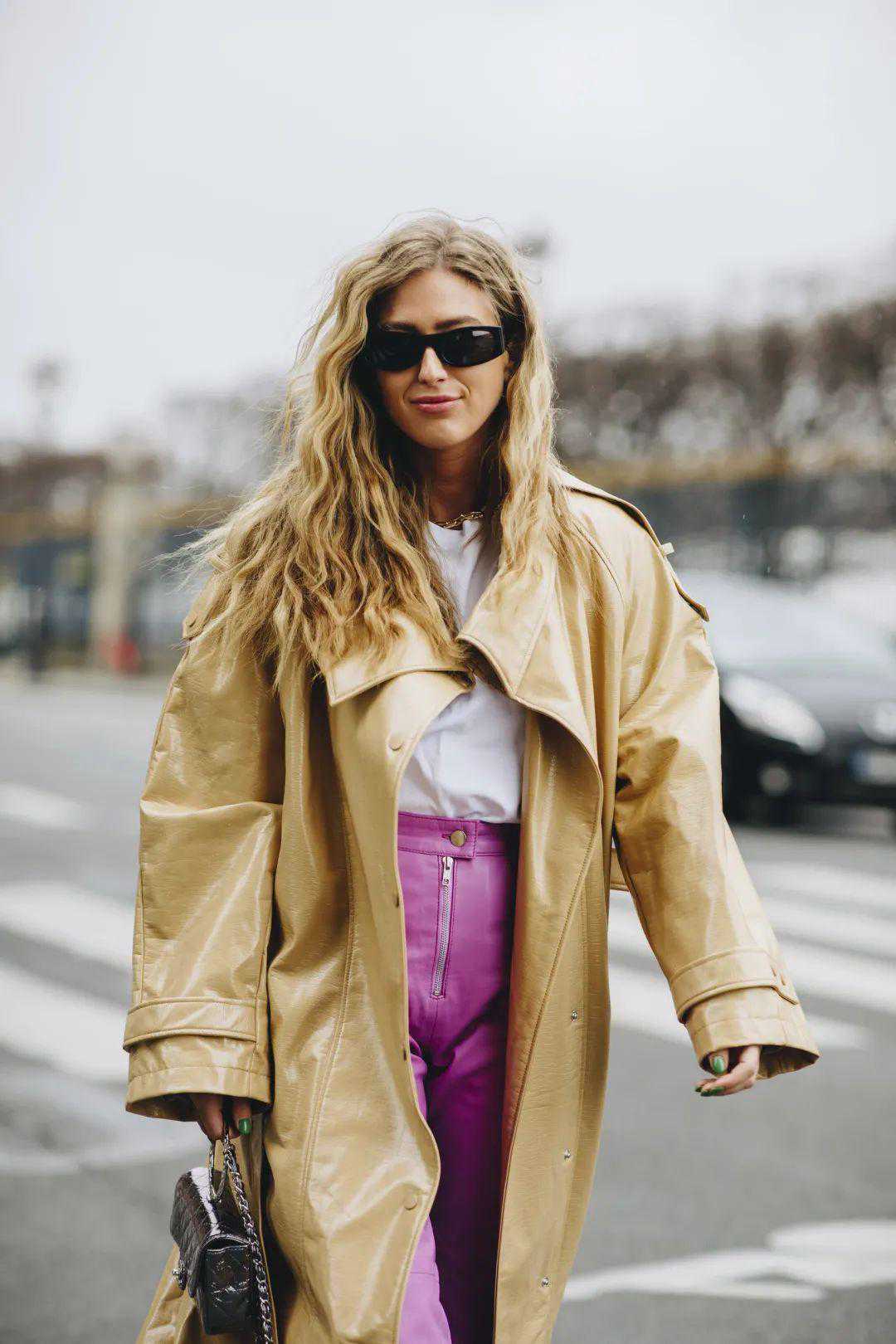 或者是用皮风衣当做外套,让整个造型休闲又随意。