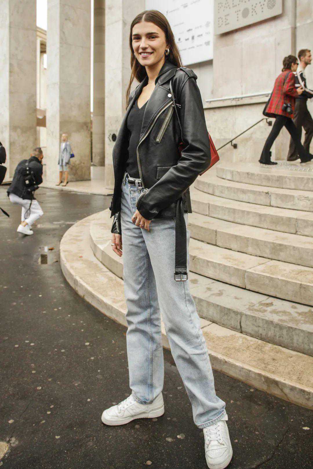 虽然一点街拍上看到最多的是模特穿的这种黑色紧身牛仔裤,但是不是细长腿穿不出同样的效果。