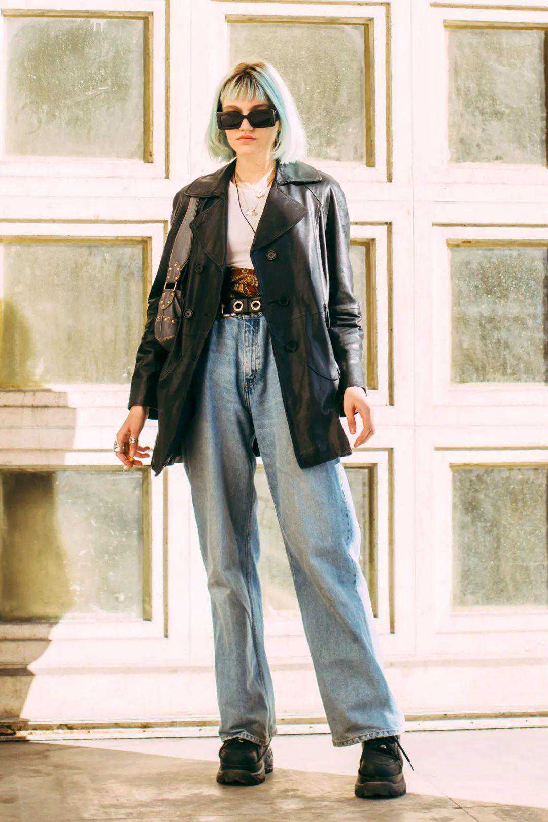 皮衣搭配牛仔裤也是最经典的CP,所以自带复古风。