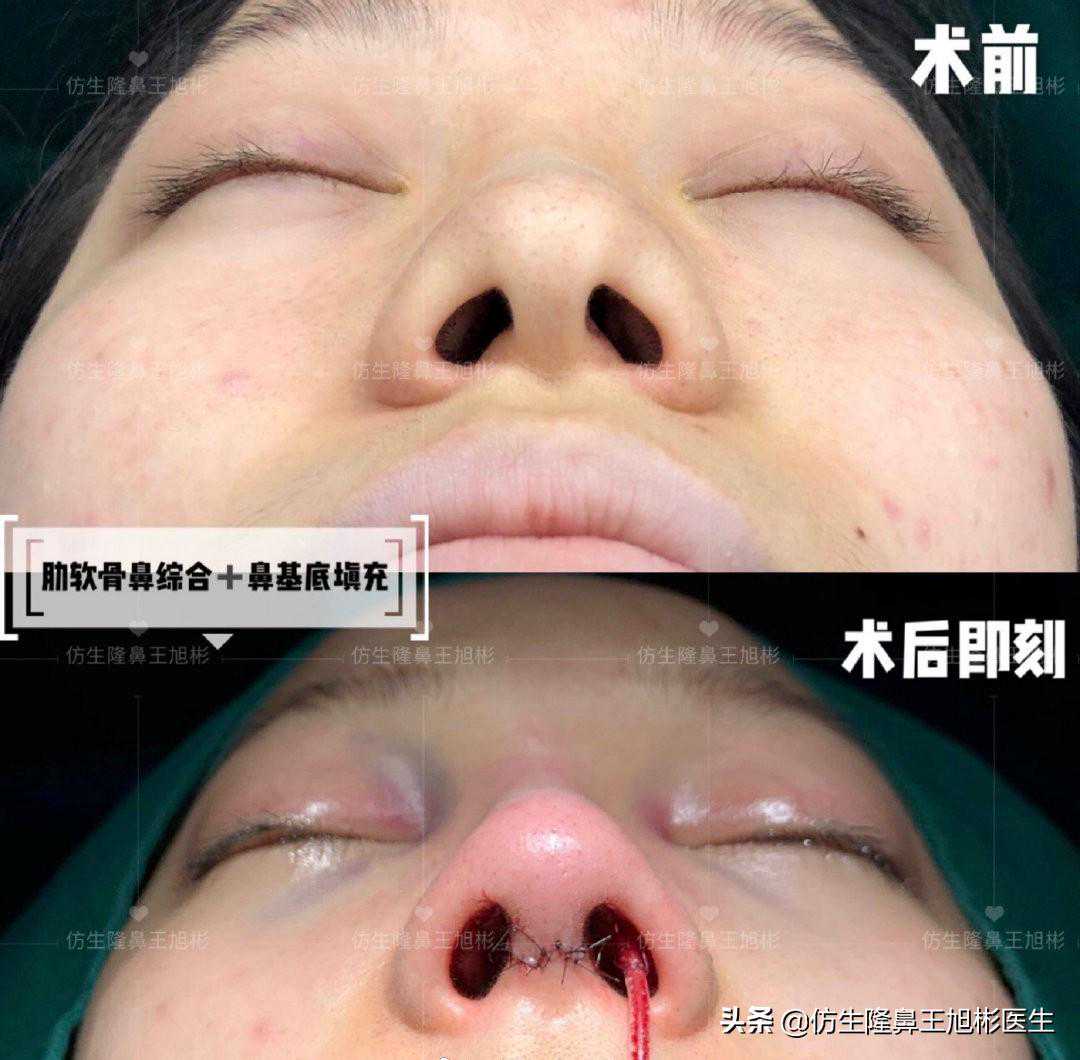 鼻翼不太宽时,只需要在鼻小柱处插内辅助柱(软骨支撑物),在鼻尖行软骨移植,鼻尖拉高了,鼻翼就没那么趴。