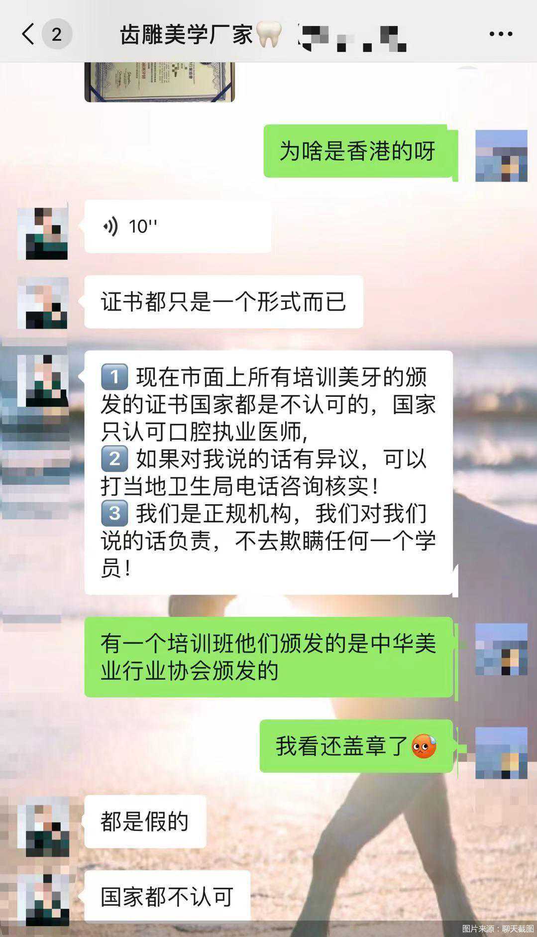 证书的含金量几何呢?一位中国医科大学附属第一医院主治医师表示,只有在有医生执业证书的前提下才可以做修复,如果没有医生执业证书是不能做口腔修复的。齿朵美相关负责人更是向北京商报记者直言,证书只是一个形式,目前市面上所有培训美牙颁发的证书国家都不认可,国家只认可口腔执业医师。