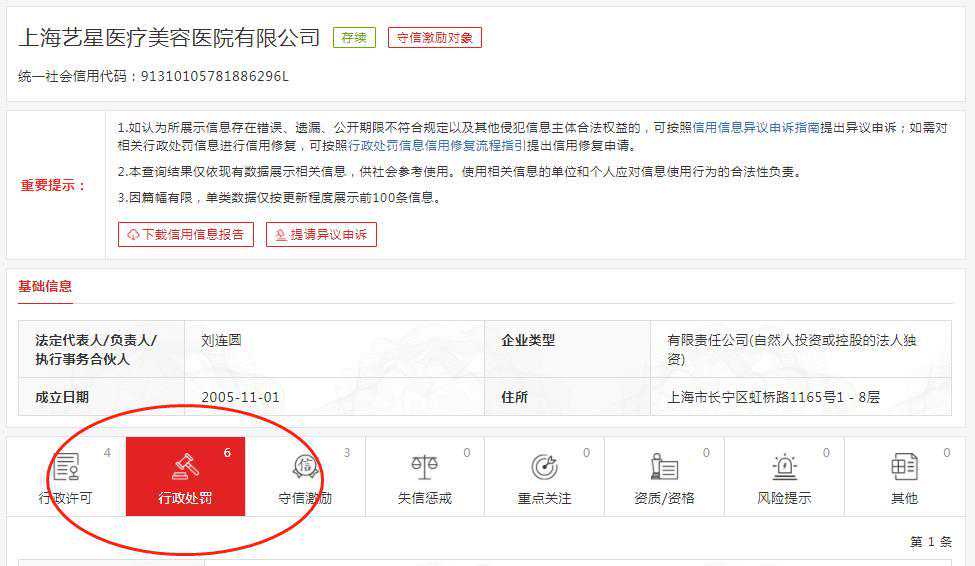 此外,信用中国也显示上海艺星医疗美容医院有限公司于2021年有多条行政处罚。