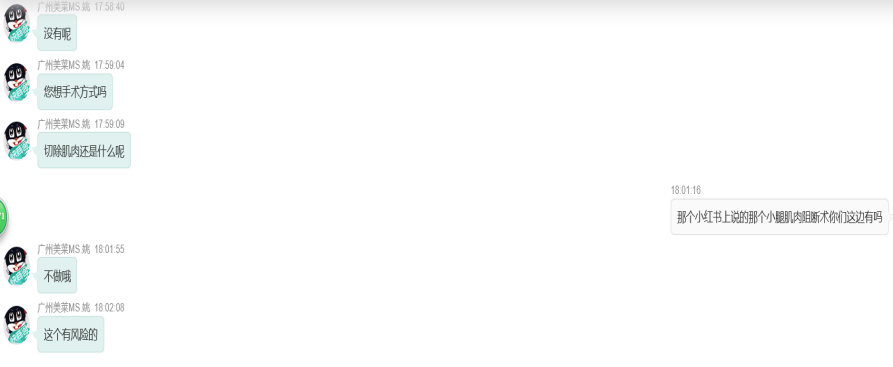 “我们这边能做,不过需要医生面诊才能决定是否符合手术条件。”南都记者电话咨询壹加壹美容医院、海峡医美时,客服均表示可以开展“小腿神经阻断术”,但添加微信后对方又反口称该手术风险大,“一般正规医院不推行”。