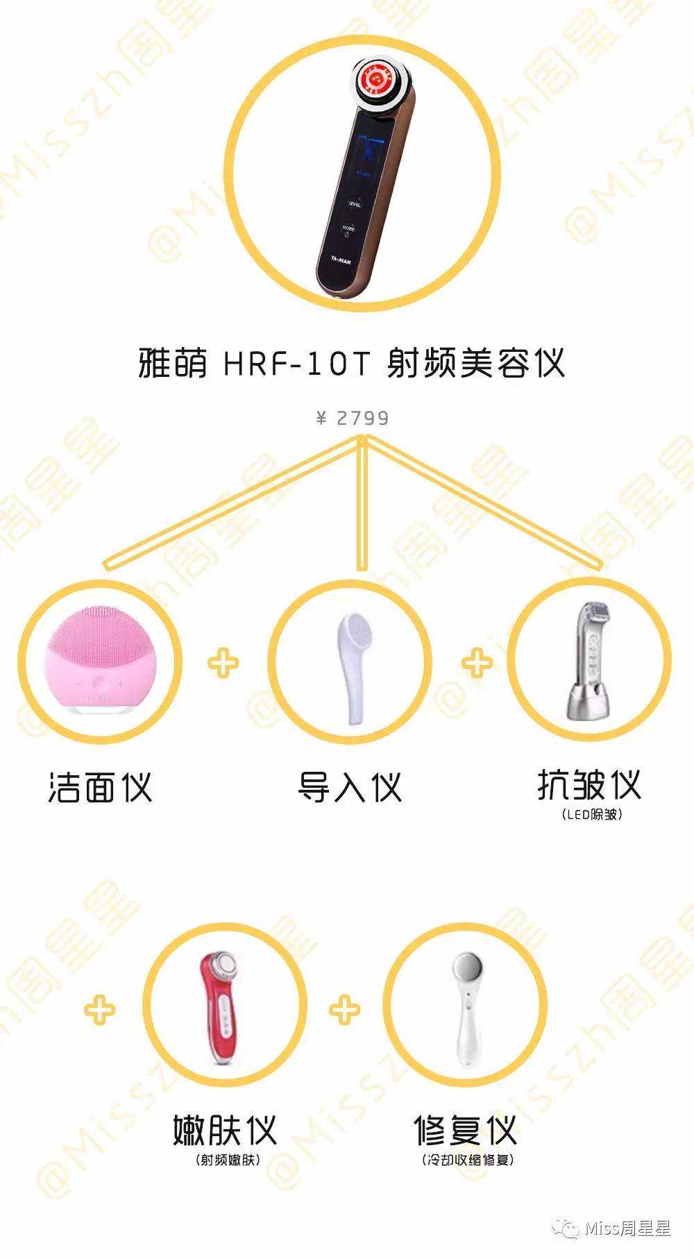 作为多功能一体机的代表,雅萌10t同时有导出+导入+EMS提拉+冰敷+射频这五种美容仪的基本功能,刚要入美容仪坑(手头没有其他美容仪)的菇娘一定要考虑下这款▽;