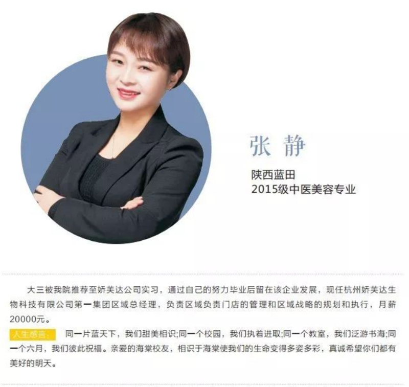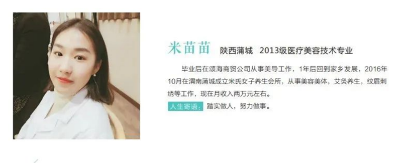 该专业毕业学生理论知识强,专业技能好,学院与北京、上海、西安、江苏、浙江等多家跨国上市医疗美容机构建立合作关系,就业待遇平均8000-20000元/月。胜任美容技师、美容顾问、美容导师、美容督导、美容医学咨询师、美容店长、区域经理、品牌总监、美容产品销售、美容器械销售、皮肤管理师、中医健康管理师、经络调理师、形象设计、健康管理、化妆造型、修饰美容、纹饰美容、化妆品调配及营销、美容仪器使用及维护、美容机构高级管理等工作。