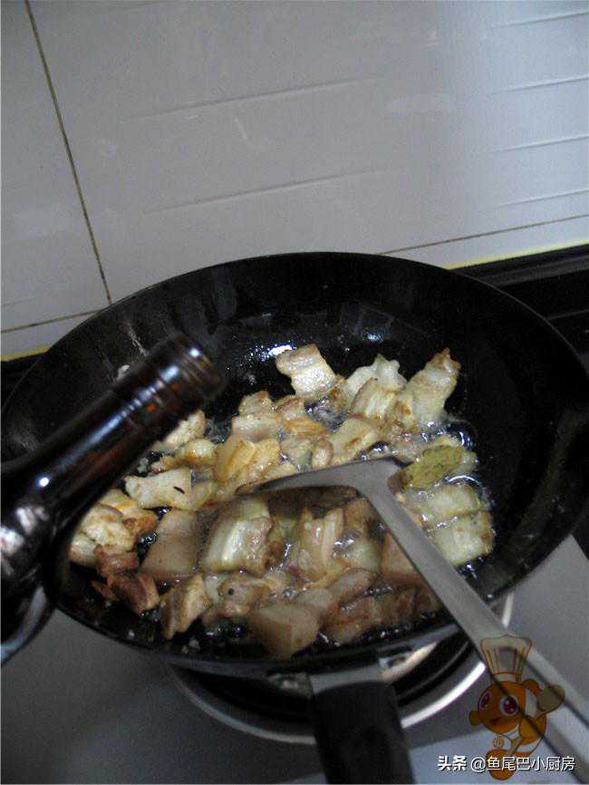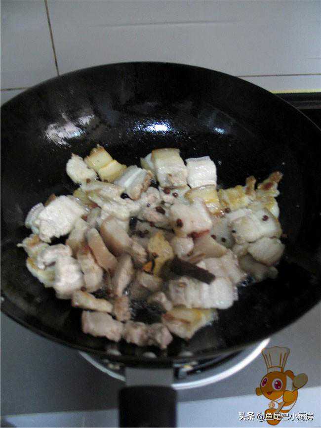 1、步骤8中逼出部分油时的火力要中小火哦,火太大会把五花肉煎焦。