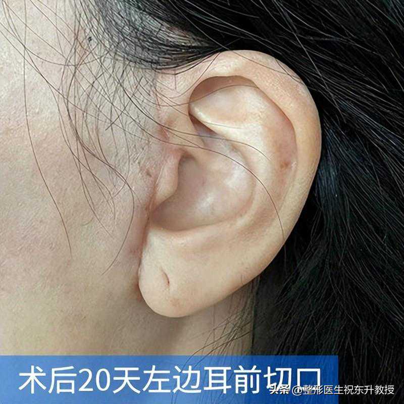 术前脸干瘦塌陷,脸型很不规则。20天后,松垂的皮肤提上去,五官轮廓清晰,脸型饱满圆润,人看起来更舒展大气。耳前切口已经愈合完全,等完全恢复后外形会变得更细,颜色变得更淡,旁人看不出来的程度。