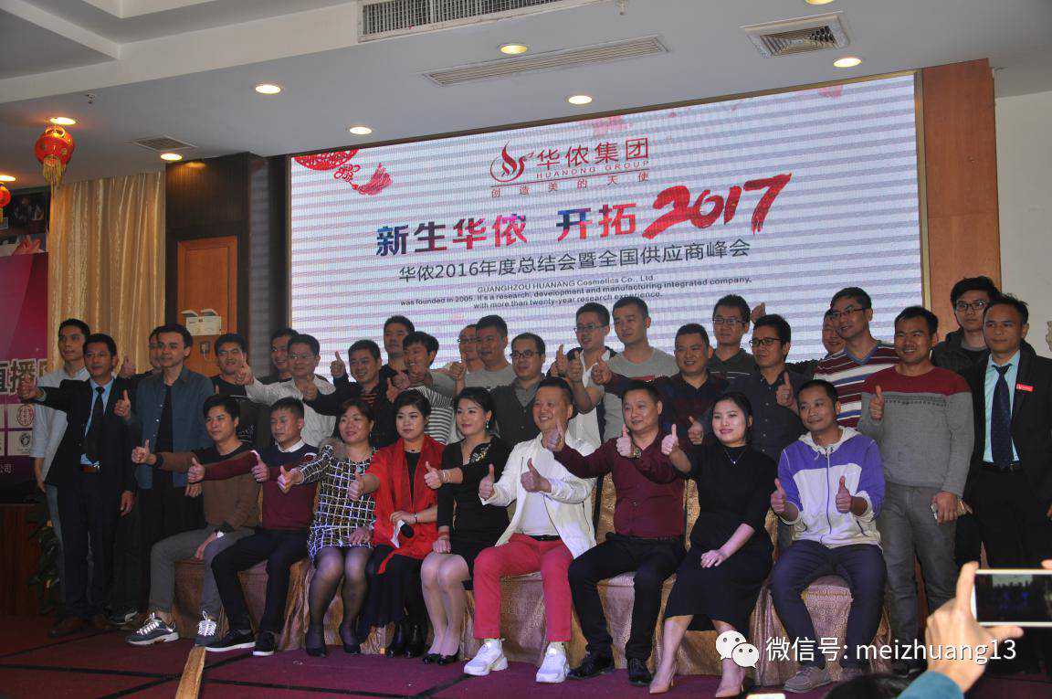2017年1月6日,华侬集团2016年度总结会暨全国供应商峰会在广州白云区太和枫景缘大酒店盛大举行,广东省美容美发化妆品协会秘书长李莉、广州润泉生物科技有限公司总经理杨辅兴、广州贝康母婴用品有限公司总经理管延民、香港采极化妆品有限公司董事长王洋、《美妆制造》杂志社发行人张明才等多位嘉宾受邀出席大会。通过大会华侬集团报告并总结了2016年的年度成绩与进步,同时提出“新生华侬,开拓2017”的口号,为集团2017年的发展作出更准确清晰的规划设想。