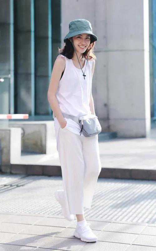 渔夫帽自带的休闲气质特别适合搭配裤装,轻松时尚,又充满青春活力。