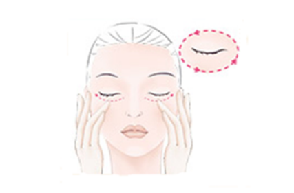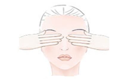 第四步:将双手搓热,然后将手心覆盖在眼部,由内向外提拉,重复三次。