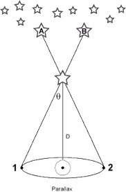 布拉德利的工作开始于1725年。他原本要观测恒星视差(stellarparallax)。恒星视差指的是,当从不同的位置观看时,恒星位置或方向看起来会有所不同,通常用地球公转轨道半径对恒星张开的角度作为视差,如下图所示。