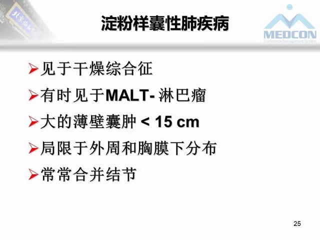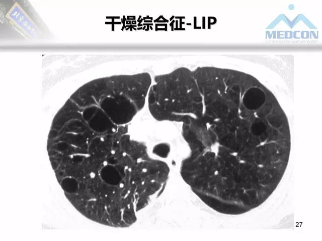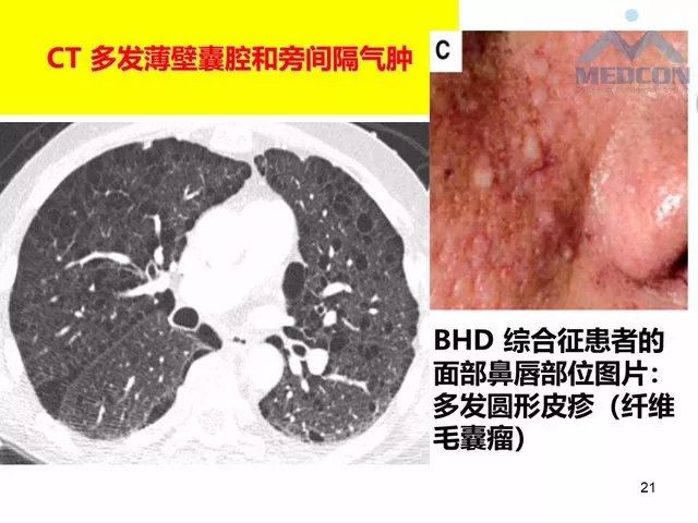 1.小叶中心型肺气肿:病理特点为小叶中心部分呼吸细支气管及其壁上的肺泡扩张,而小叶周围的肺泡无扩张,早期多见于肺上部,HRCT可见小叶中心部呈0.5~1cm的无壁透明区。病变进展透亮区可以增多,范围扩大,严重时与全小叶型肺气肿不易区分。