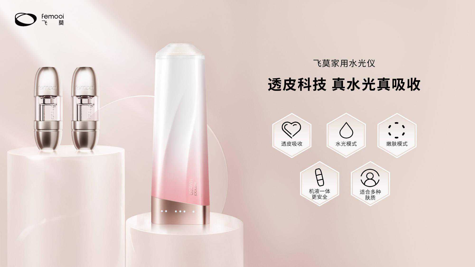 具体来说,2018年飞莫首先选择市场认知度较高的洁面仪,作为首款产品在网易考拉上线,再逐步入驻天猫、京东等主流线上电商平台。在选择第二款产品的时候,崔泽昊提到,水光针作为线下常见的医美项目,频次和需求量很大,同时能配合其他医美项目,达到更好效果。其次,国外品牌主要聚焦的射频仪品类的底层逻辑是将医用热玛吉变成家用射频,但水光针覆盖的人群会比热玛吉更多,市场也更大,且由于当时市面上暂无中高端水光仪可以满足消费者家用水光的需求,市场存在空白。